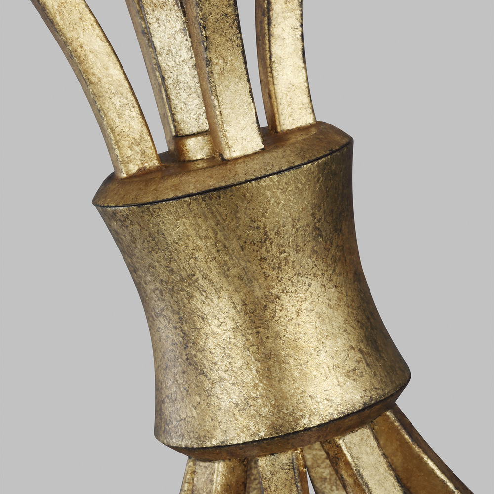 The Westerly twelve light multi-tier chandelier in antique gild makes a stunning addition to an entryway, great room, or above a large dining table. Designed by Chapman & Myers, Westerly features flowing arms and an exposed candelabra. The sculpted lines and hook with loop detail at the top and on the canopy lend designer flair and polish. Select the best size for your space and tailor the look with either Antique Gild for a chic, metallic feel or Smith Steel for a more rustic tone.