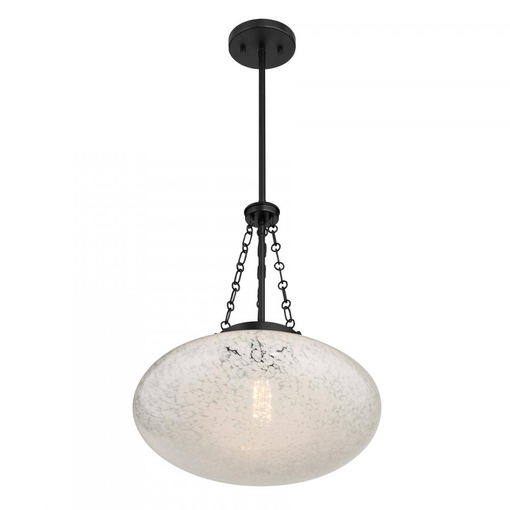 Get a bright and vintage-inspired look with the Savoy House Willow 1-light pendant. It has a mesmerizing, eye-catching oval shade of cloud glass, detailed hanging chain and a Matte Black finish. Willow is 16.5" in width and has an adjustable height ranging from 20.25" to 74.25". Uses one standard size bulb of up to 60 watts. Bulb not included. Comes with four 12" downrods and one 6" downrod.