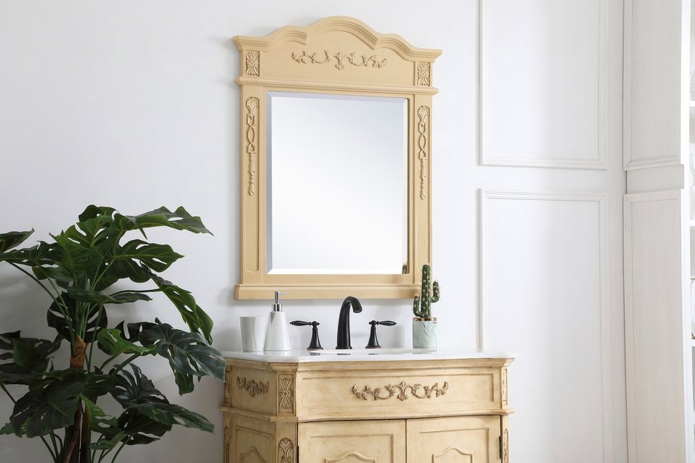 This unique mirror measures 28 x 36 and is the perfect size for a bathroom mirror or any accent mirror for your home