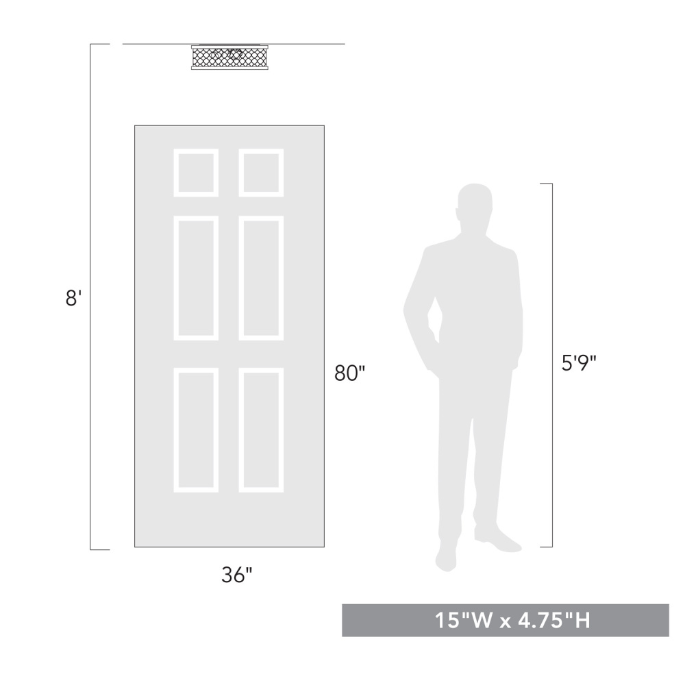 Bring rustic charm into your home with the Wry Lighting Bailey 3-light Flush Mount. Featuring a metal shade and a Matte Black frame, it creates a warm and inviting atmosphere. The metal shade, adorned with rustic chicken wire, provides a textured element that allows light to filter through, creating a cozy environment while highlighting the fixture’s stylish design. Our Matte Black finish exemplifies timeless versatility, enhancing both modern and traditional decors with its smooth surface. Ideal for low ceilings in hallways, bathrooms, and other compact spaces, this fixture is damp location rated for occasional moisture. It requires three E26 Medium base bulbs, not included, with a maximum wattage of 60 per bulb. Overall dimensions are 15"W x 4.75"H x 15"D. Enjoy the fusion of quality craftsmanship and charming details that elevate your home’s lighting solutions.