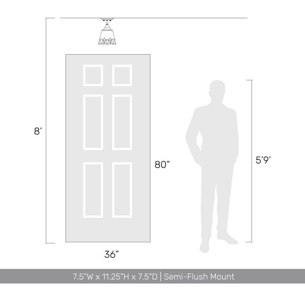 Bring a touch of Farmhouse elegance into your home with the Wry Lighting Eloise 1-light Semi-Flush Mount in Antique Ivory. This fixture showcases a metal shade that beautifully complements the antique ivory frame, creating a welcoming atmosphere with its soft illumination. The antique ivory finish evokes the timeless charm of a treasured European heirloom, showcasing a delicate craquelure texture that is artfully aged with dark patina highlights. This semi-flush mount is designed to enhance mid-height ceilings in spaces like kitchens and living areas, ensuring it remains suitable for damp locations, such as covered porches and laundry rooms. Designed for easy installation on angled ceilings, it requires a single E26 medium base bulb (not included), with a maximum wattage of 100, providing ample light for any room. Overall dimensions are 7.5"W x 11.25"H x 7.5"D, making it an ideal lighting solution to create a cozy, romantic ambiance. Experience the artisanal craftsmanship that makes each piece unique, perfect for those wanting to embrace vintage charm in their decor.