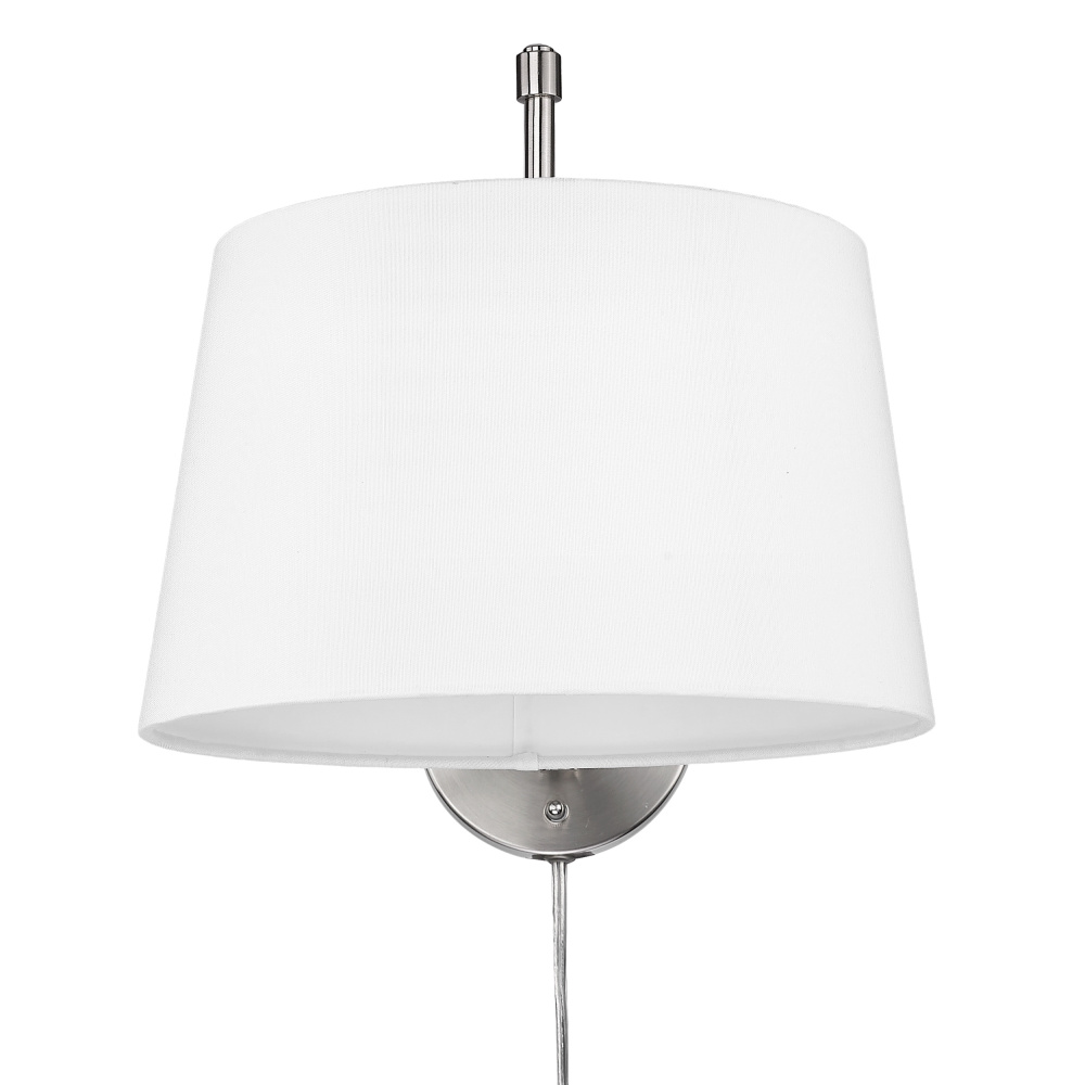Discover the timeless elegance of the Wry Lighting Ryleigh 1-light Swing Arm Wall Lamp. This exquisite fixture features a Fabric shade paired with a Pewter frame, creating a warm and inviting atmosphere in any space. The Modern White fabric shade offers a crisp, clean look with its bright color and matte finish, ensuring a soft, diffused glow when illuminated, perfect for setting a welcoming mood. The soft and classic Pewter finish, created through a durable electroplating process, presents an understated elegance that complements both traditional and contemporary interiors. Designed for convenience, this wall lamp is adjustable and perfect for bedrooms and home offices, rated for damp locations, making it suitable for areas with occasional moisture. Its convenient swing arm enables precise positioning of light for reading or tasks. With overall dimensions of 12"W x 11.5"H x 19.63"D, this lamp requires one E26 Medium base bulb (not included) with a maximum wattage of 100. Combine quality with sophistication in your decor with this beautiful fixture from Wry Lighting, ideal for enhancing your living space.