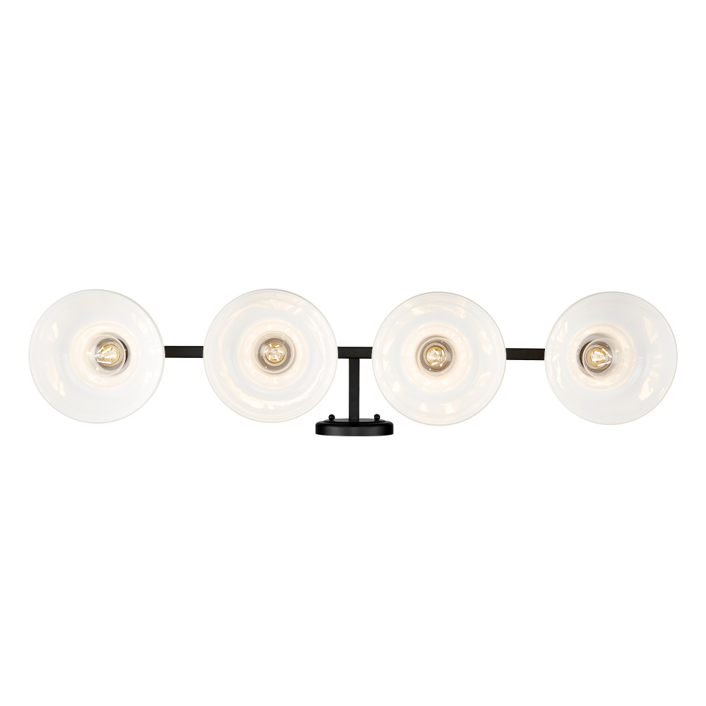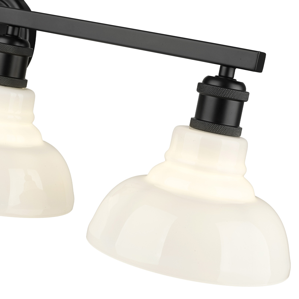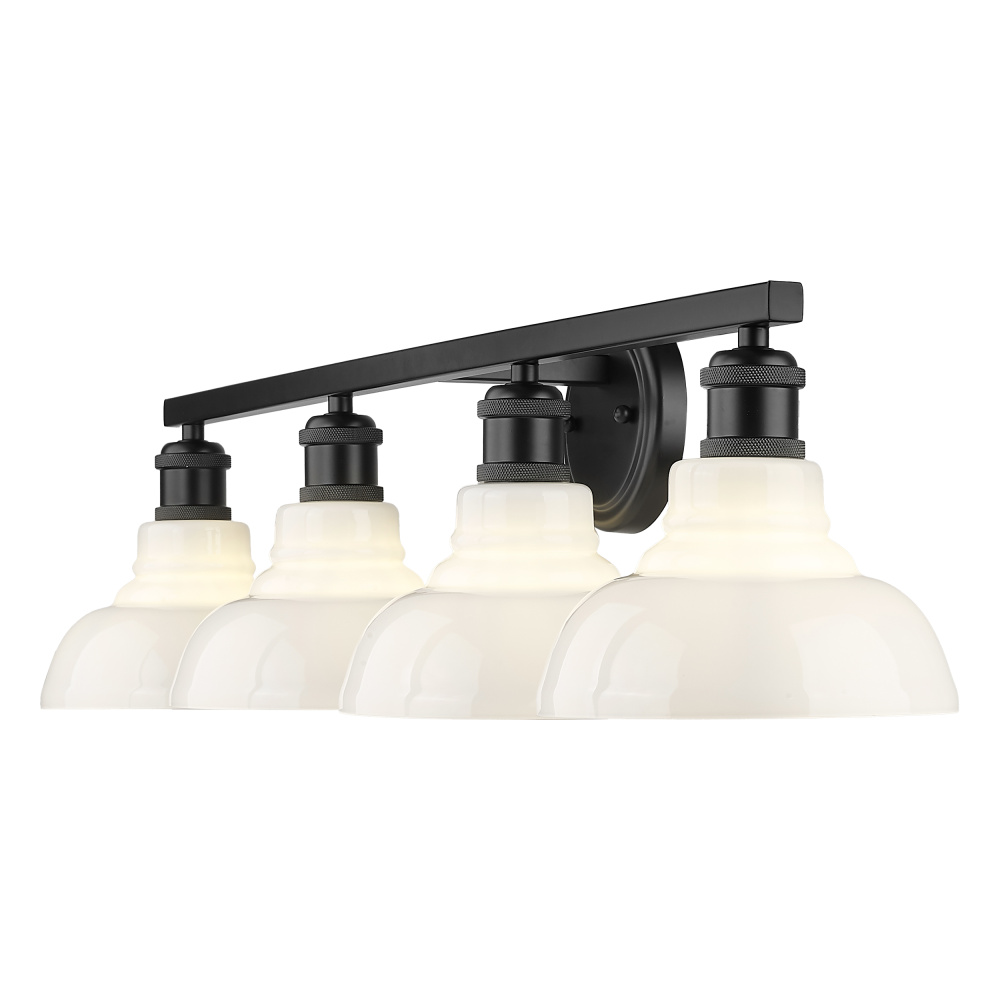 Yep by Golden Lighting Carver 4-light Vanity in Matte Black and Vintage Milk Glass