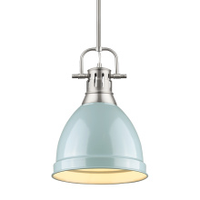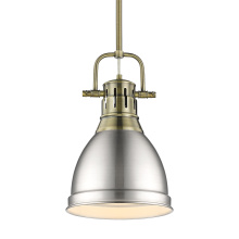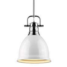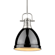 Bring farmhouse elegance into your home with the Yep by Golden Lighting Duncan 1-light 9in Rod Hung Pendant in Matte Black and Chrome shade. Featuring a metal shade and a matte black frame, it creates a welcoming atmosphere. The chrome shade provides a bright, reflective surface that elevates the space, while the matte black finish adds depth and sophistication. Ideal for kitchens, dining rooms, and entryways, it ensures versatile lighting with its damp location rating, suitable for spaces with occasional moisture. The installation is effortless with sloped-ceiling compatibility and an adjustable height range from 22.25" to 58.25". The overall dimensions are 8.88"W x 14.25"H x 8.88"D, and it requires 1 E26 Medium base bulb (not included, max 100 watt). With its striking design, this pendant brightens up any space beautifully.
