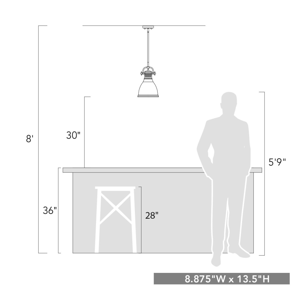 Bring farmhouse elegance into your home with the Yep by Golden Lighting Duncan 1-light 9in Rod Hung Pendant. Featuring a metal shade and a Matte Black frame, it creates a welcoming atmosphere. The White metal shade boasts a bright, reflective surface reminiscent of vintage enamelware, offering both style and functionality. Embodying modern style, the Matte Black finish absorbs light, providing an understated elegance that blends with various decors. Rated for damp locations, this pendant is perfect for covered porches, kitchens, entryways, and more. The fixture can be easily installed on sloped ceilings and can be adjusted in height from 22.25" to 58.25". With overall dimensions of 8.88"W x 14.25"H x 8.88"D, it requires one E26 Medium base bulb (not included, max 100 watts). Illuminate your space while adding a touch of classic charm.