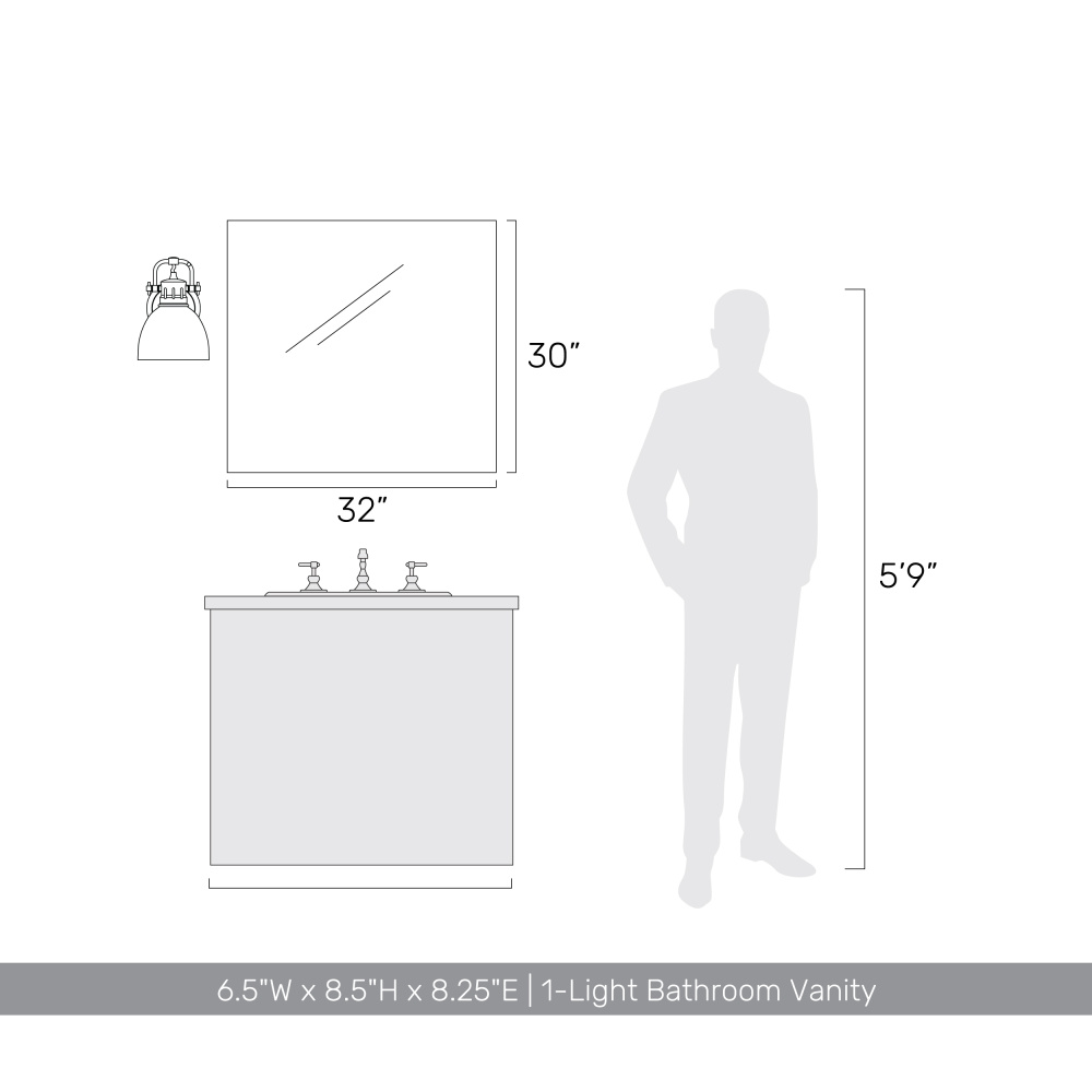 Bring vintage-inspired charm into your home with the Yep by Golden Lighting Duncan 1-light Vanity. Featuring a navy blue metal shade and a matte black frame, it creates a welcoming atmosphere. The navy blue metal shade adds a rich pop of color, enhancing the lighting with its high-gloss sheen that reflects its surroundings beautifully. The matte black finish is timeless and versatile, providing a smooth feel that works with various decor styles, from bold contemporary to traditional farmhouses. Ideal for bathrooms, this fixture is damp location rated, suitable for covered spaces with occasional moisture. Customize your lighting experience with adjustable directional heads that highlight specific areas. Overall Dimensions: 6.5"W x 8.5"H x 8.25"D. It requires 1 E26 Medium base bulb (not included), with a max wattage of 100. Experience the quality and character of this classic fixture that complements modern and vintage interiors alike.