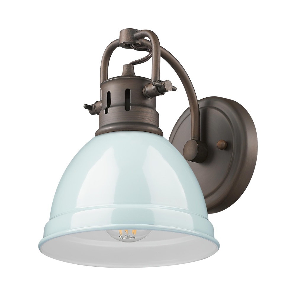 Yep by Golden Lighting Duncan 1-light Vanity in Rubbed Bronze and Seafoam shade