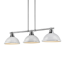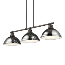 Bring Farmhouse elegance into your home with the Yep by Golden Lighting Duncan 3-light Island Light. Featuring a matte black finish and a sleek design, it creates a sophisticated atmosphere. This fixture showcases a classic matte black finish that delivers a non-reflective, smooth texture, absorbing light beautifully while adding depth to your space. The Matte Black finish offers an understated elegance, making it a versatile choice for any decor style, from minimalist to bold designs. Designed for kitchen islands, this fixture is Dry Location Rated, suitable for indoor spaces not exposed to moisture. The convertible design allows for height adjustments, functioning well on both sloped and flat ceilings. Overall Dimensions: 40"W x 8.5"H x 10.88"D. Requires 3 E26 Medium base bulbs (not included), with a maximum of 100 watts per bulb. The Duncan light is a perfect combination of utility and style, ideal for anyone seeking quality and aesthetic appeal in their lighting choices.
