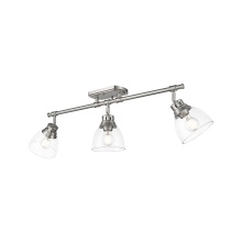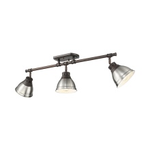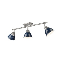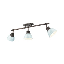 Bring farmhouse elegance into your home with the Yep by Golden Lighting Duncan 3-light Semi-Flush Mount. Featuring a metal shade and a matte black frame, it creates a welcoming atmosphere. The pewter metal shade offers a soft, classic look with a warm silver-grey color that gently diffuses light, adding elegance to your space. This finish is both clean and modern, its deep black hue is versatile and complements a wide range of decor. This fixture is rated for use in damp locations, making it suitable for covered areas like bathrooms and porches. It features adjustable directional heads, allowing you to customize the lighting to highlight specific areas. The overall dimensions are 35.38"W x 10.75"H x 6.5"D, and it requires 3 E26 Medium base bulbs (not included) with a maximum of 100 watts per bulb. Elevate your home with quality craftsmanship and a charming design.