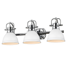 Bring traditional elegance into your home with the Yep by Golden Lighting Duncan 3-light Vanity. Featuring a metal shade and a matte black frame, it creates a welcoming atmosphere. This metal shade brings a pewter electroplated finish, distinguished by a fine, brushed texture that gently diffuses light, creating an elegant, non-glare glow. The matte black finish offers timeless versatility with a smooth, non-reflective surface, complementing a wide range of decors, from minimalist to bold contemporary styles. Perfect for bathrooms, this fixture is Damp Location Rated, suitable for covered and semi-enclosed spaces with occasional moisture. The adjustable directional heads allow you to customize the lighting, highlighting specific areas or objects effortlessly. Overall Dimensions: 24.5"W x 8.5"H x 8.25"D | Requires 3 E26 Medium base bulbs (not included). Max 100 wattage per bulb. Elevate your space with this stylish vanity light, promising quality and timeless design.
