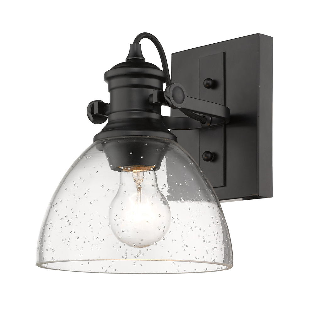 Yep by Golden Lighting Hines 1-light Adjustable Semi-Flush Mount in Matte Black and Seeded Glass
