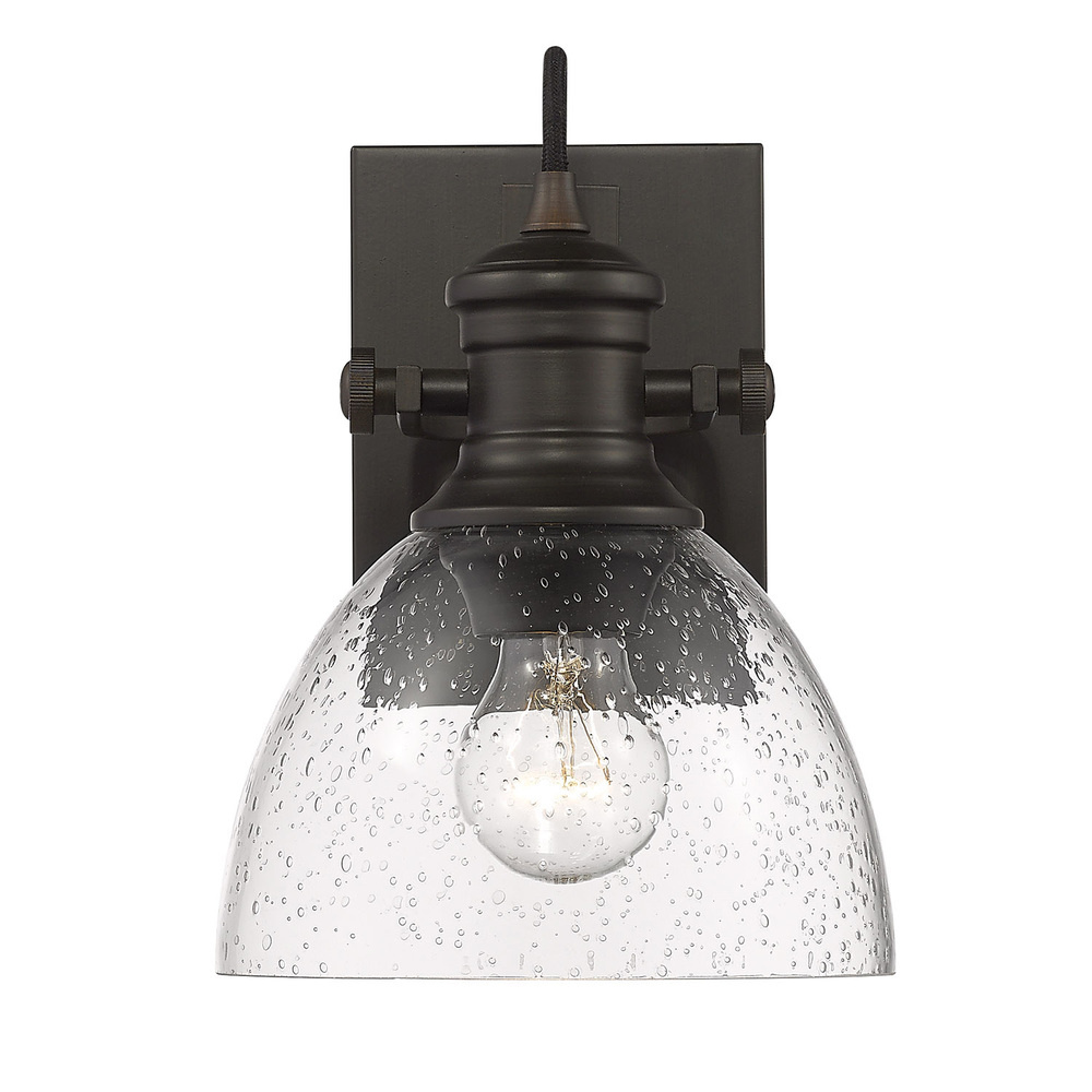 Yep by Golden Lighting Hines 1-light Vanity in Rubbed Bronze and Seeded Glass