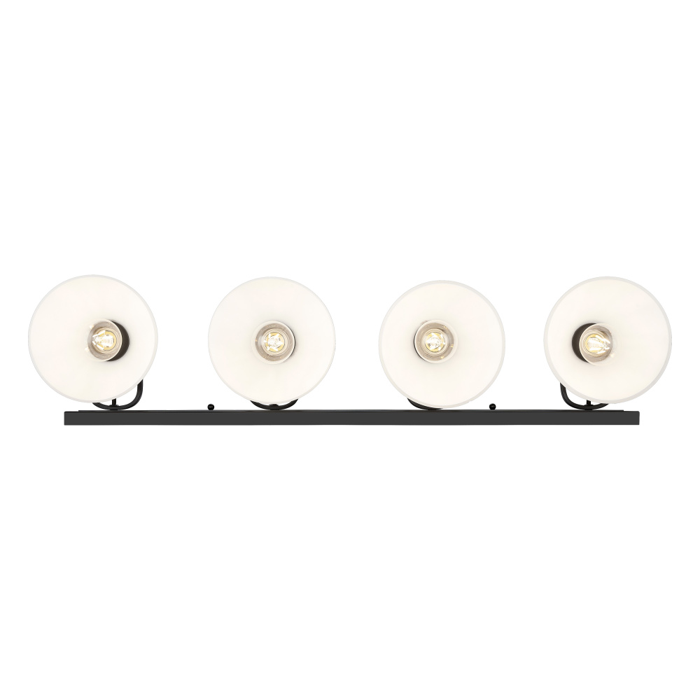 Yep by Golden Lighting Hines 4-light Vanity in Matte Black and Opal Glass