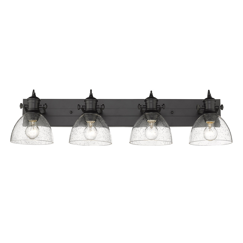 Yep by Golden Lighting Hines 4-light Vanity in Matte Black and Seeded Glass
