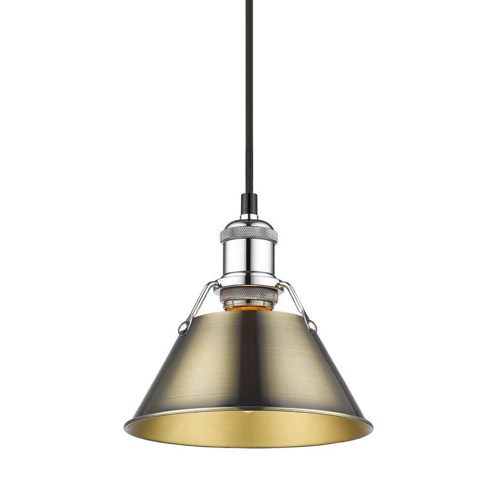 Yep by Golden Lighting Orwell 1-light 8in Pendant in Chrome and Aged Brass shade