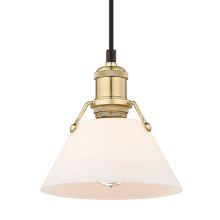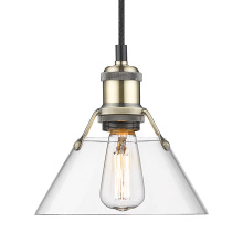 Bring industrial elegance into your home with the Yep by Golden Lighting Orwell 1-light 8in Pendant. Featuring a metal shade and a chrome frame, it creates a welcoming atmosphere. The metal shade, finished in Aged Brass, radiates warmth and vintage charm, enhancing your decor. The polished chrome finish adds a bright, reflective sheen that elevates any space with its timeless aesthetic, making it ideal for both modern and traditional settings. This pendant is suitable for kitchens, dining rooms, and covered outdoor spaces, as it is damp location rated. It's designed for easy installation with sloped-ceiling compatibility and adjustable height from 15" to 129". It measures 7.5"W x 7.5"H x 7.5"D and requires one E26 Medium base bulb (not included) to illuminate your space. Experience sophistication and style with this exquisite fixture.