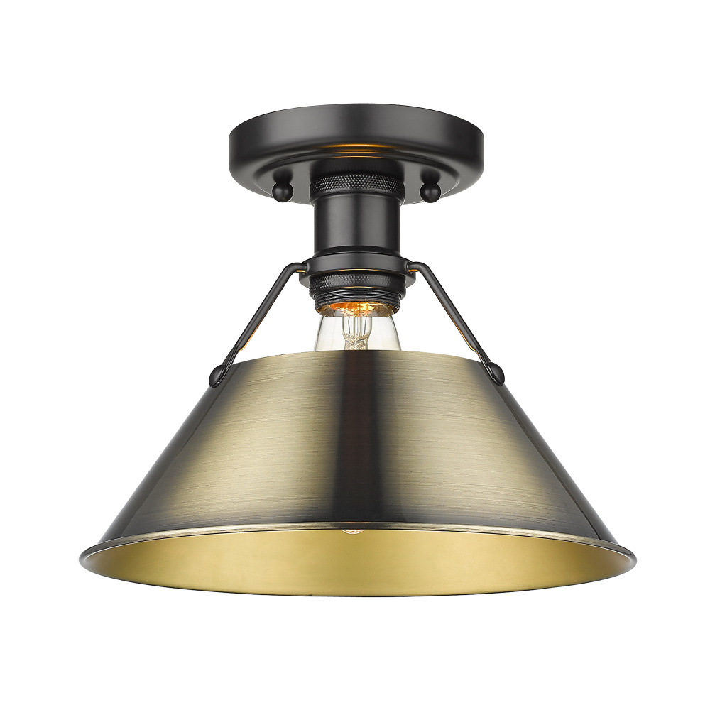 Yep by Golden Lighting Orwell 1-light Flush Mount in Matte Black and Aged Brass shade