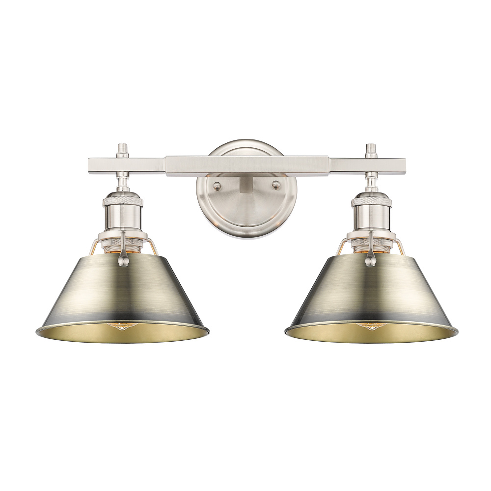 Yep by Golden Lighting Orwell 2-light Vanity in Pewter and Aged Brass shade
