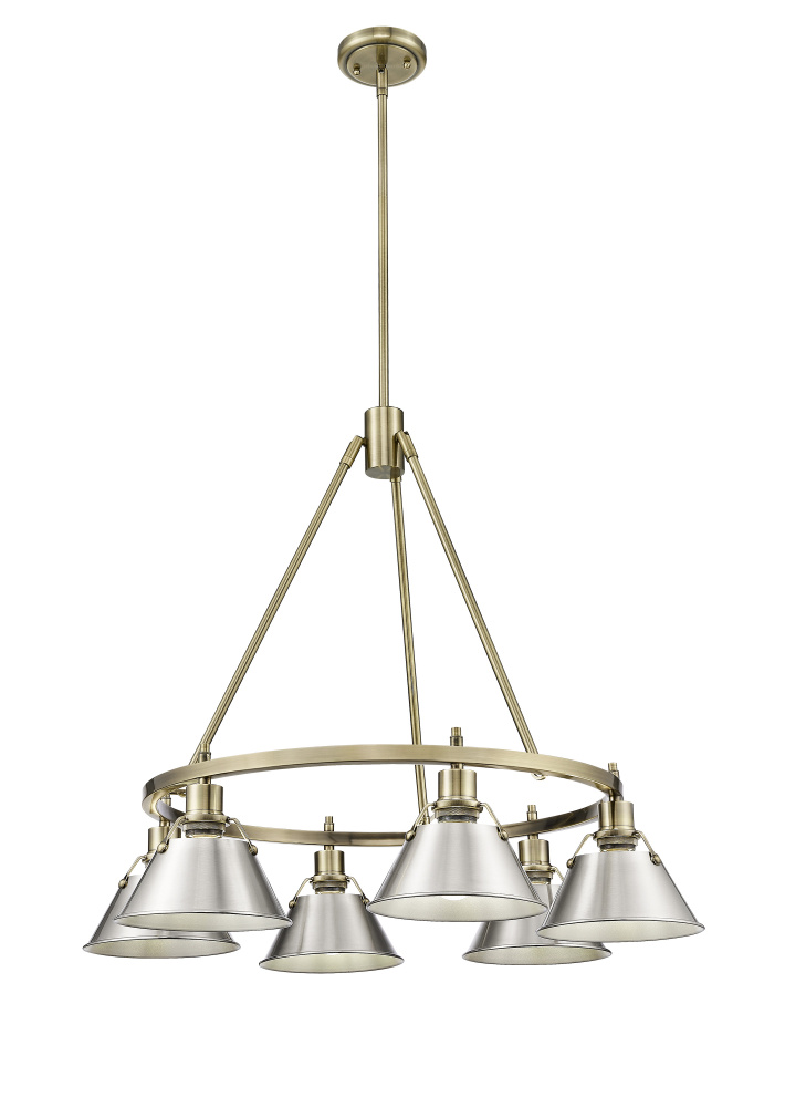 Yep by Golden Lighting Orwell 6-light Chandelier in Aged Brass and Pewter shade
