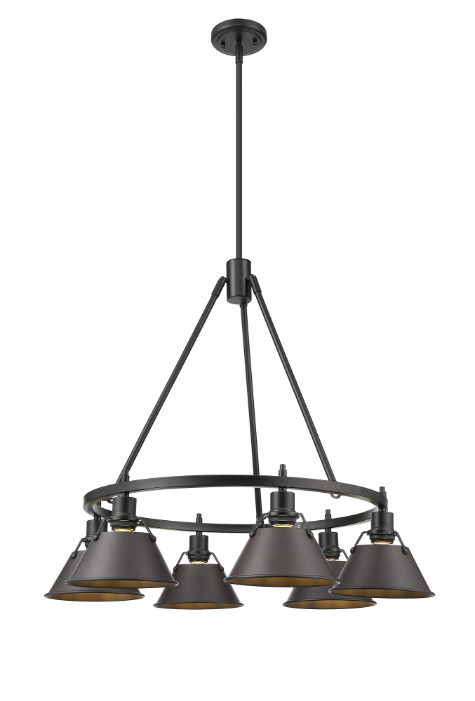 Yep by Golden Lighting Orwell 6-light Chandelier in Matte Black and Rubbed Bronze shade