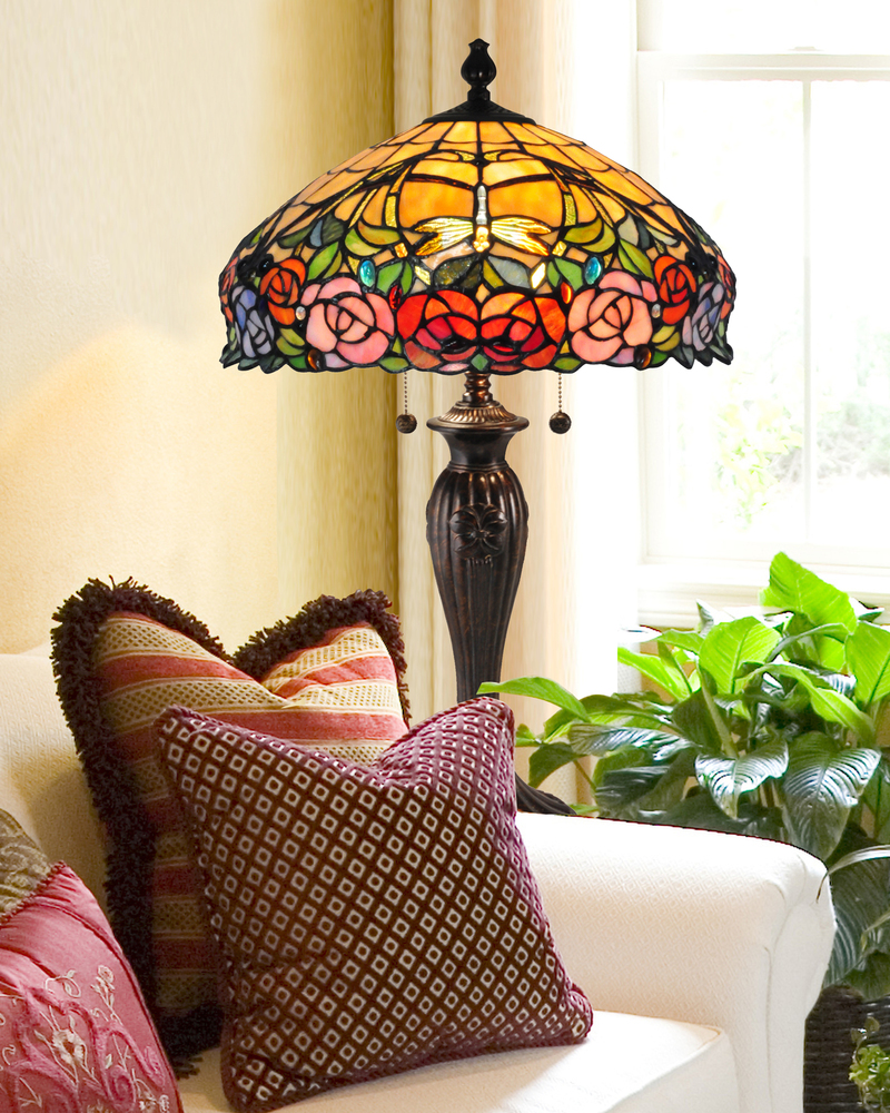 Our Zenia Table Lamp Will Add A Bright Splash Of Spring Color To Any Room In Your Home. The Generously Sized Dome Shade Features A Background Of Warm Light Amber. A Bevy Of Spring Blossoms In Red, Pink, Blue, Yellow, Orange And Green, Hang From Vines That