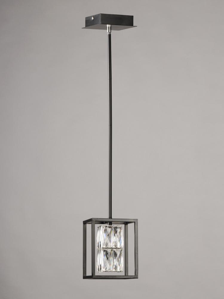Rectangular Beveled Crystals are banded together to form soft square cylinders which are illuminated by LED that creates a brilliant lighting effect. Some items include metal chassis of Black which frame the crystal for a beautiful silhouette.