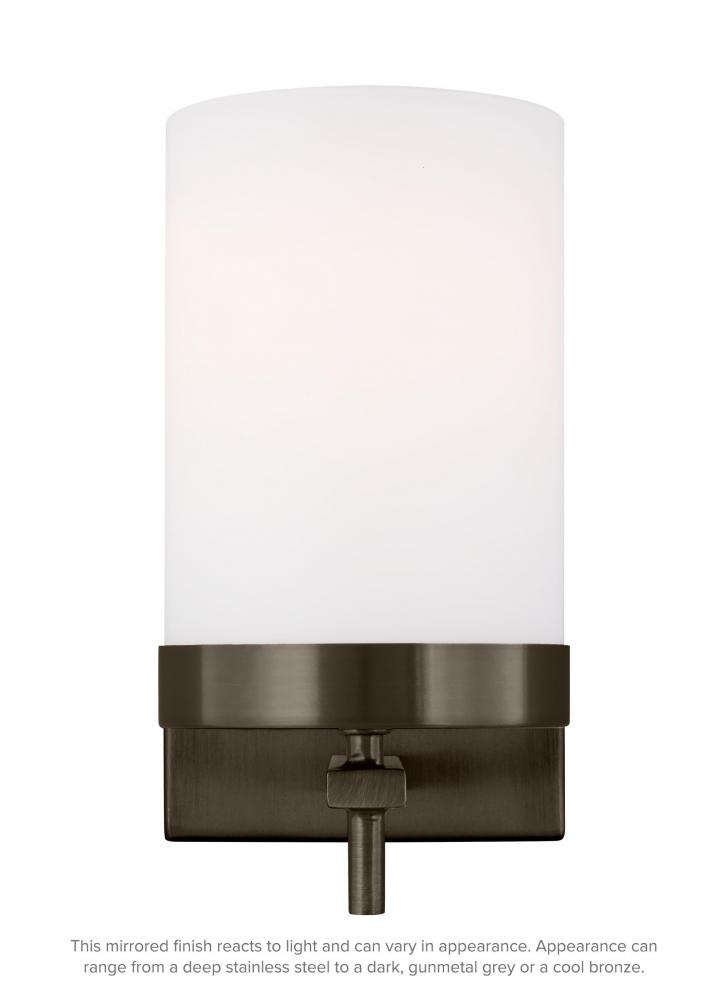 The Zire one light wall sconce in brushed oil rubbed bronze offers shadow-free lighting in your powder room, spa, or master bath room. Zire embodies simple clean lines in three finishes that strike a perfect balance of elegant yet minimalist design.