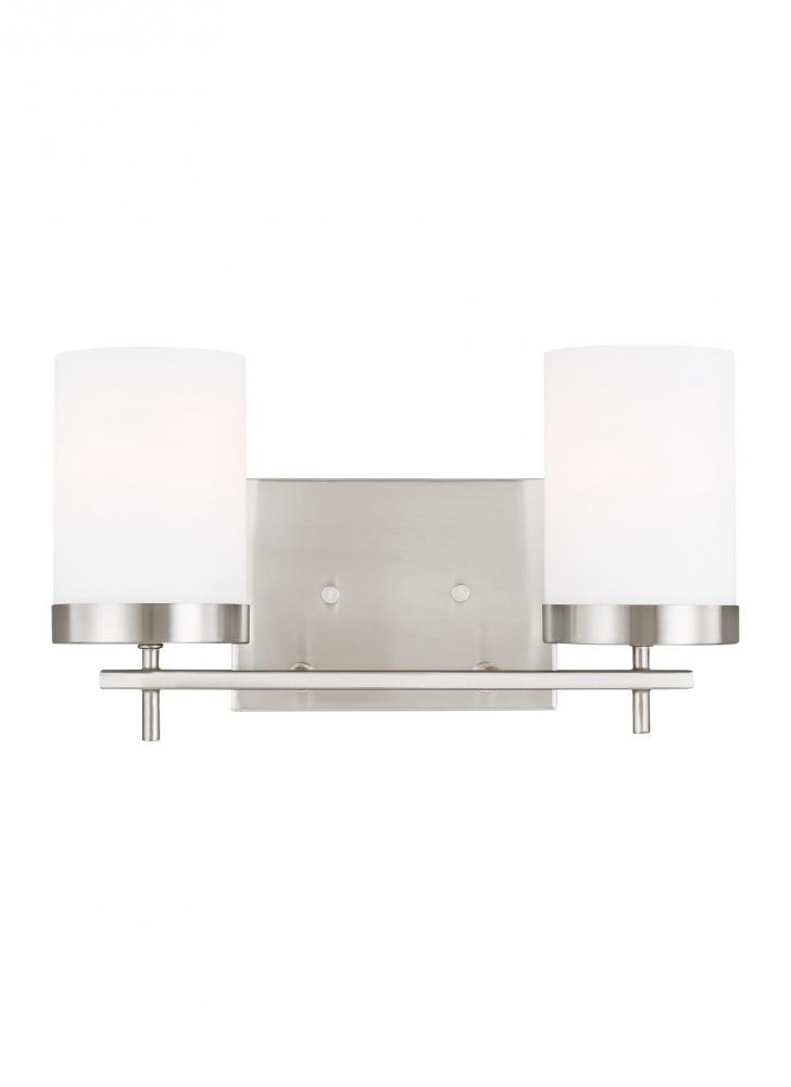 The Zire two light vanity fixture in brushed nickel offers shadow-free lighting in your powder room, spa, or master bath room. Zire embodies simple clean lines in three finishes that strike a perfect balance of elegant yet minimalist design.