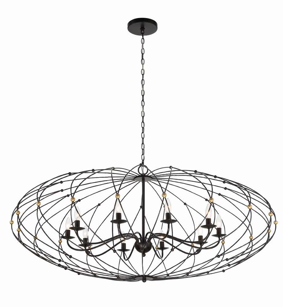 The Zucca collection features a unique oblong sphere with thin metal arms, perfect for a modern farmhouse look.