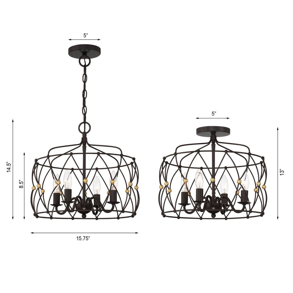 The simplicity of bohemian design takes center stage in our spherical Zucca collection. Zucca, which means pumpkin in Italian, features a saucer-shaped metal wire ring frame finished in English Bronze with Antique Gold accents. The woven mixed metal design adds visual interest to a space while still combining just the right sophistication. Whether the look is rustic, industrial, or boho, this light is as versatile as stylish.